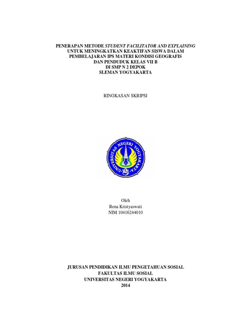 Pengaruh Model Student Facilitator And Explaining Terhadap