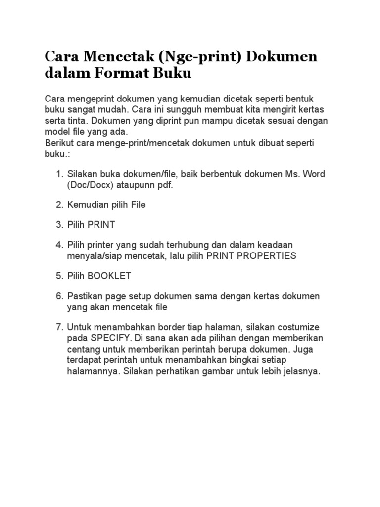 Inilah yang anda cari tentang Cara Print Model Buku Di Pdf.