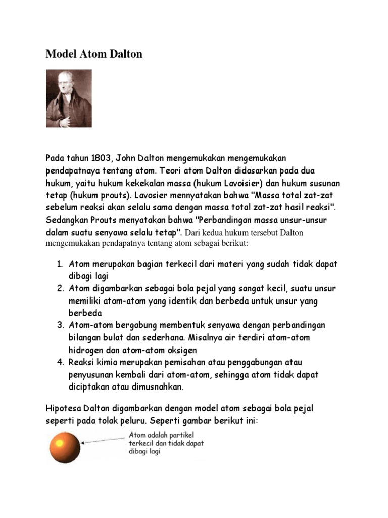 Model Atom Dalton Digambarkan Sebagai Bola Yang Berbentuk