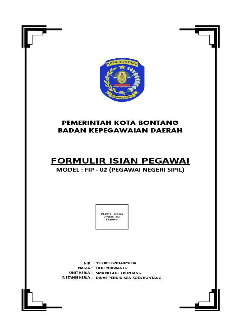 Lengkap disertai gambar Formulir Isian Pegawai Model Fip 02.