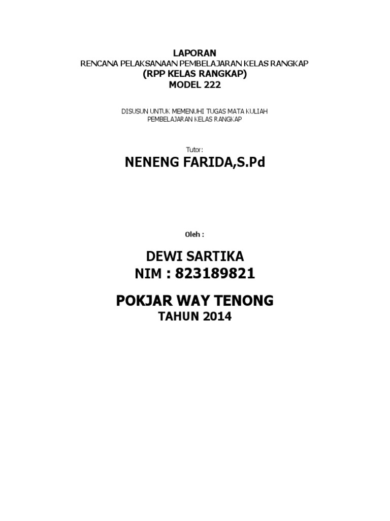 Rpp Pembelajaran Kelas Rangkap Model 222